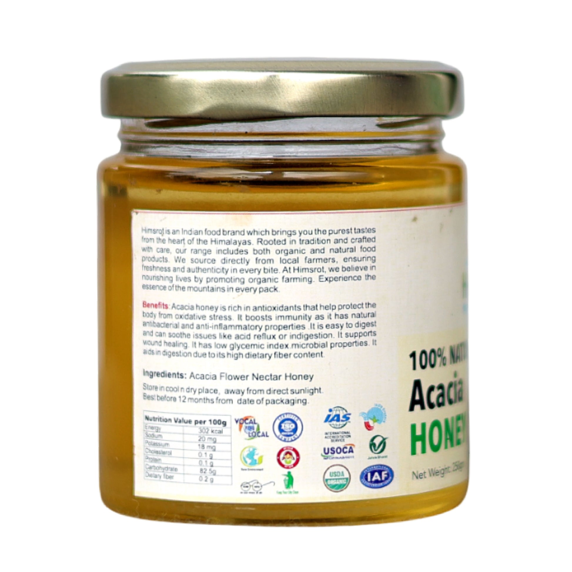 Himsrot brings you pure, raw, unprocessed Acacia honey harvested from untouched Himalayan forests, ensuring all of these benefits come to you straight from nature — with no added sugar, no preservatives, and no chemicals.