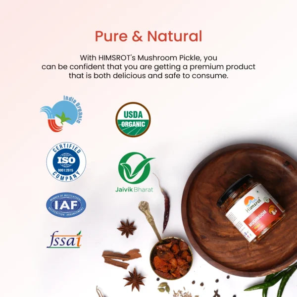 - Made from 100%Himsrot Mushroom Achar organic contents to make this a delight for you.