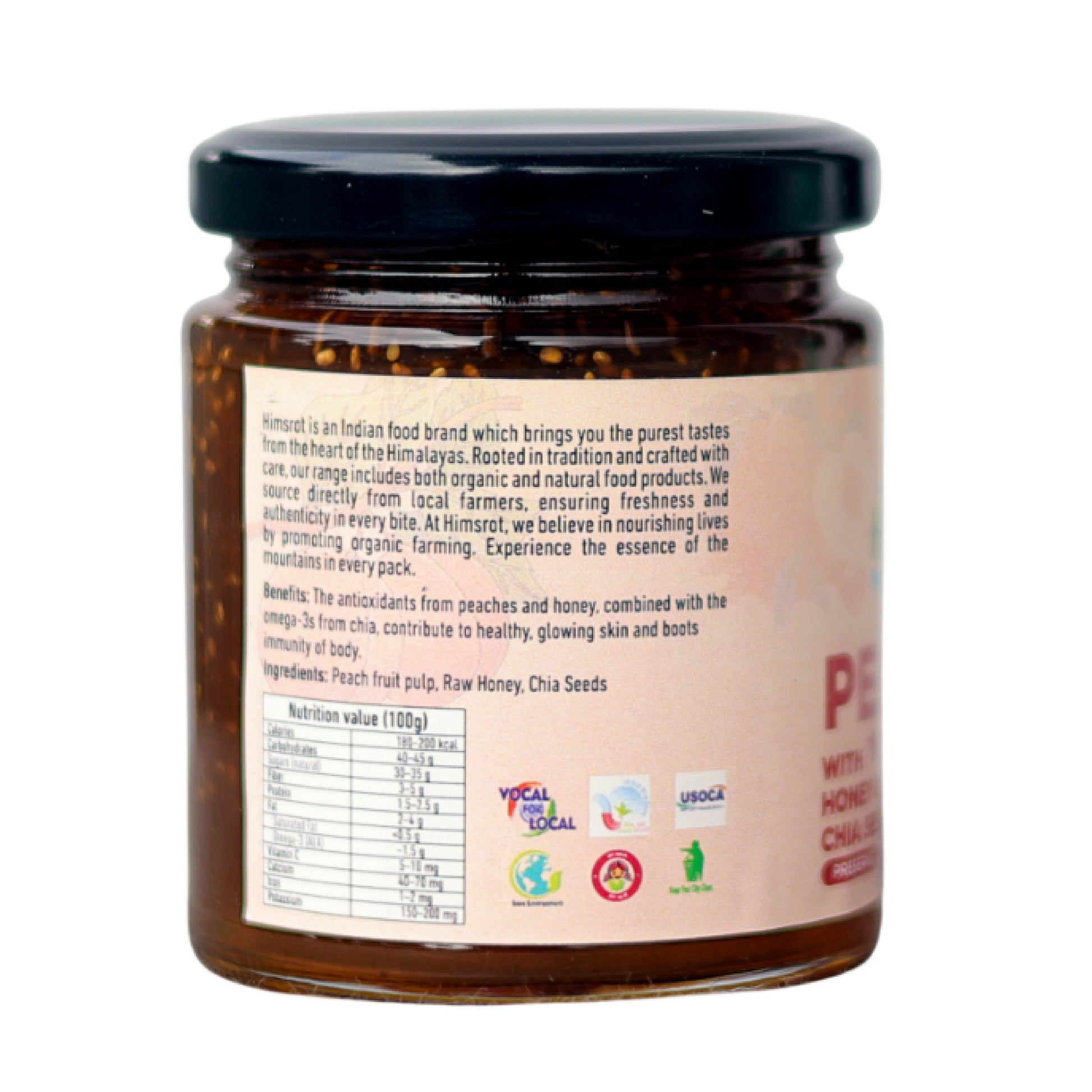 Elevate your pantry with Himsrot Peach with Honey & Chia Seeds Preserve—a naturally flavorful companion to your healthy lifestyle.